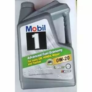Mobil 1 0W-20 Advanced Fuel Synthetic Motor Oil 5 Qtrs.