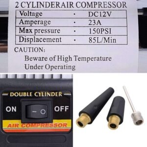 Be the first to review “Car Double Cylinder Air Compressor Tyre inflator with Analogue Tyre Pressure Gauge with Puncher Repair Kit” Cancel reply