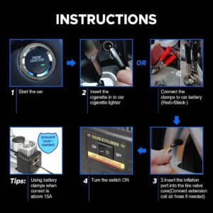 Car Double Cylinder Air Compressor Tyre inflator with Analogue Tyre Pressure Gauge with Puncher Repair Kit
